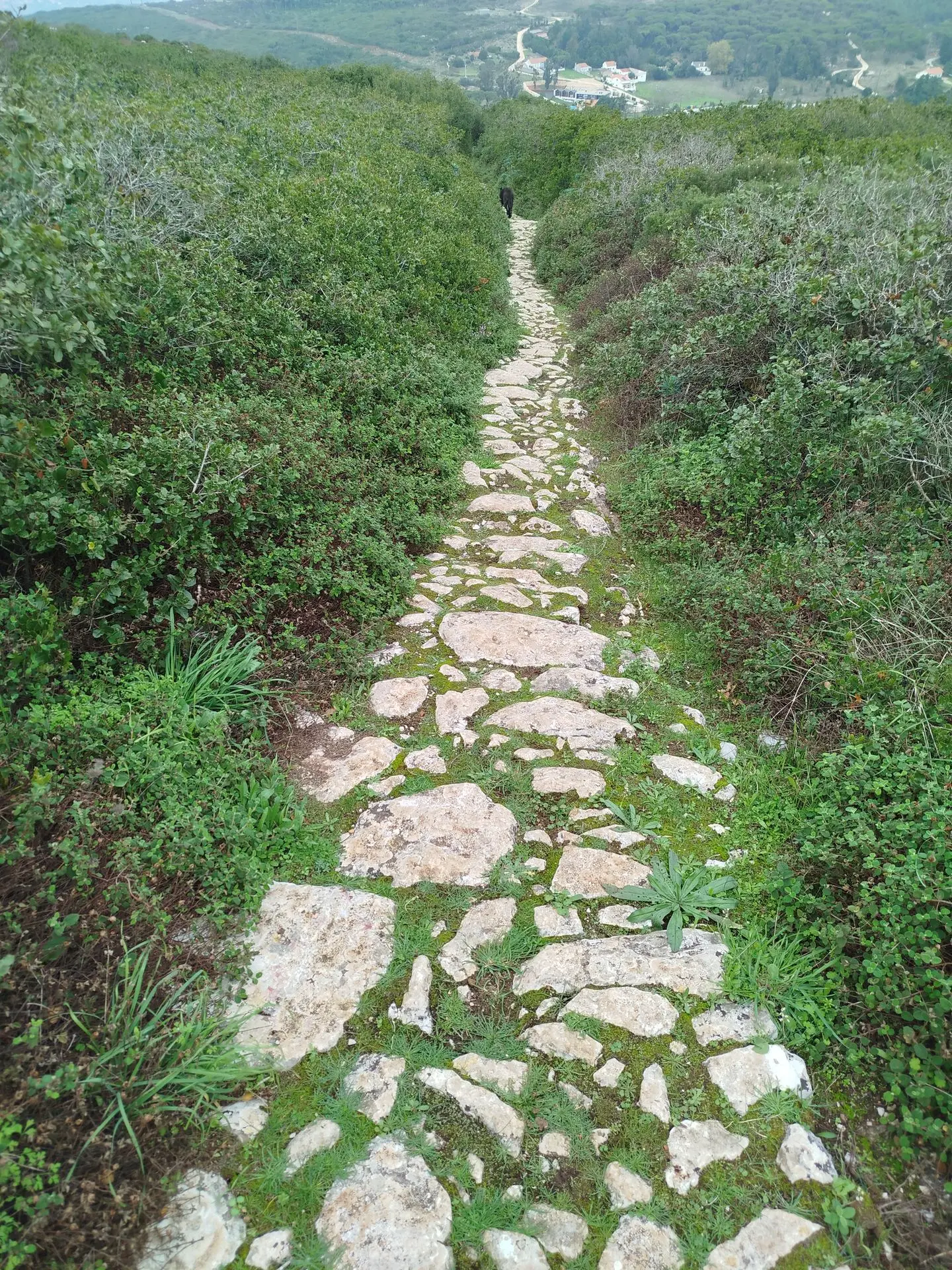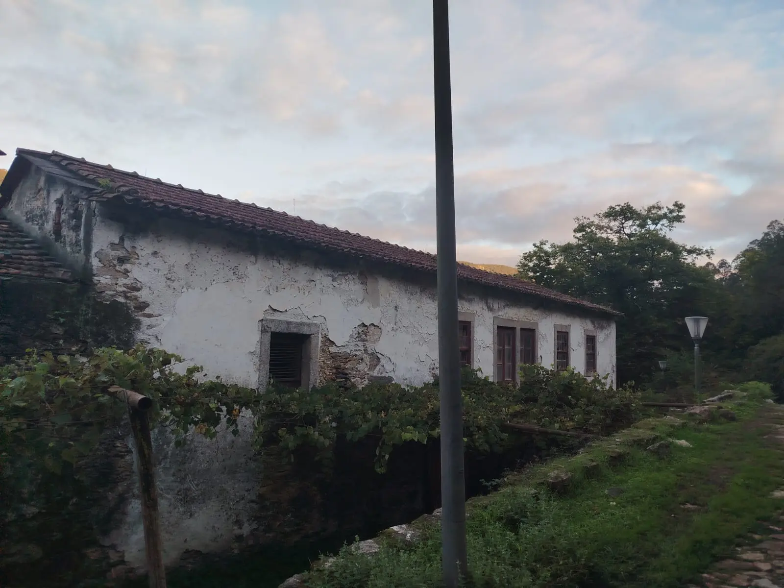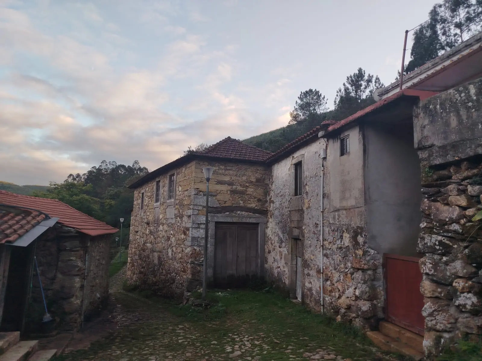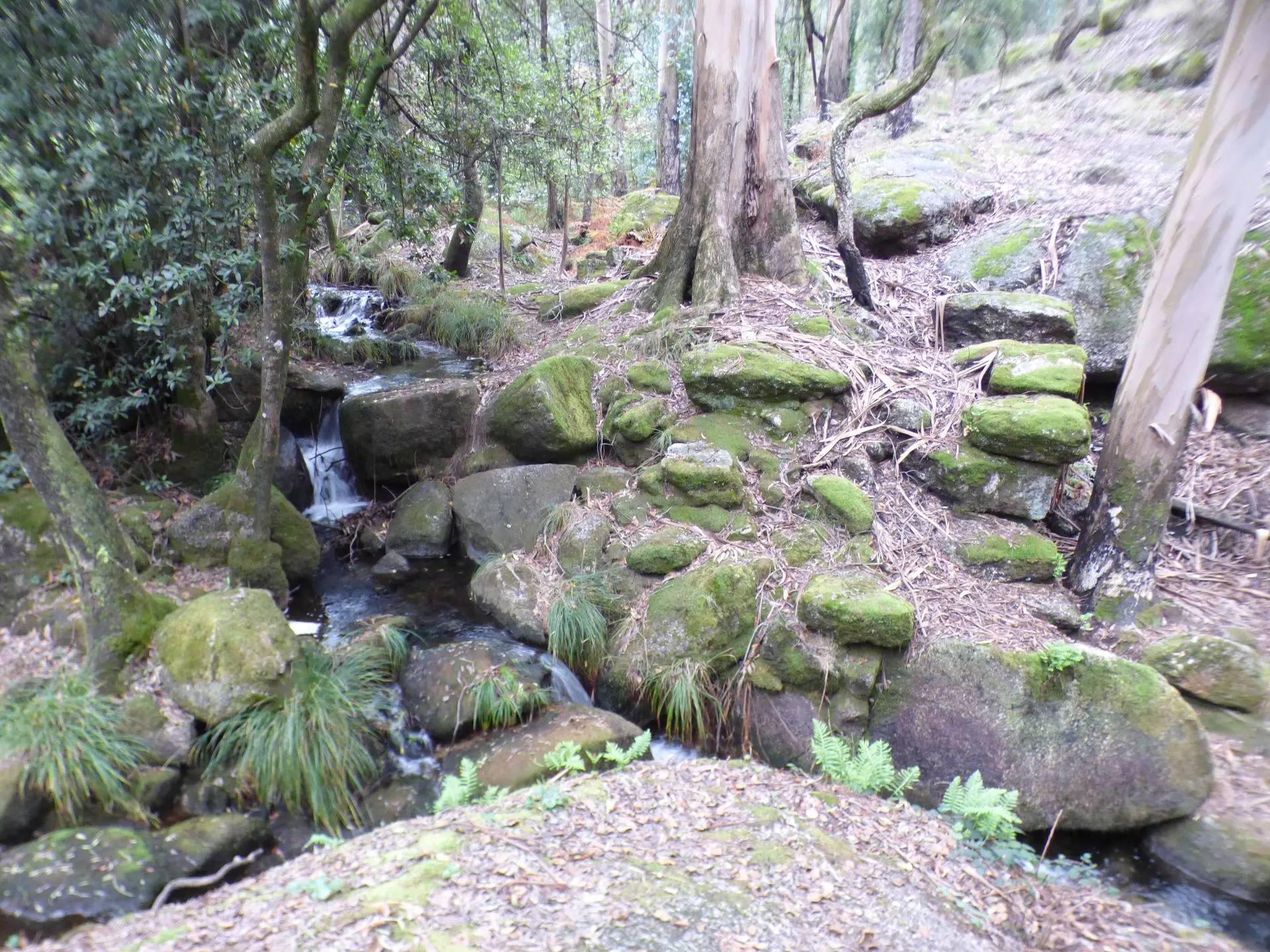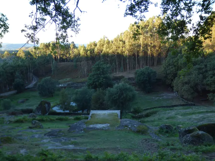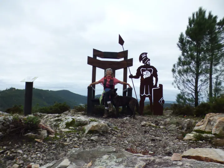 Je passe la nuit dans la Sierra de Porto; La randonnée me fait traverser la vallée de la Tranquillité et la vallée de la Contemplation. Nous marchons sur du Quartz, avec ce temps humide, le terrain ressemble à une patinoire lustrée. Nous traversons le village de Couce qui compte 9 habitants mais au moins 10 fois plus de lampadaires et de chats. L'eau de la source est excellente. Sulureuse mais non gazeuse.