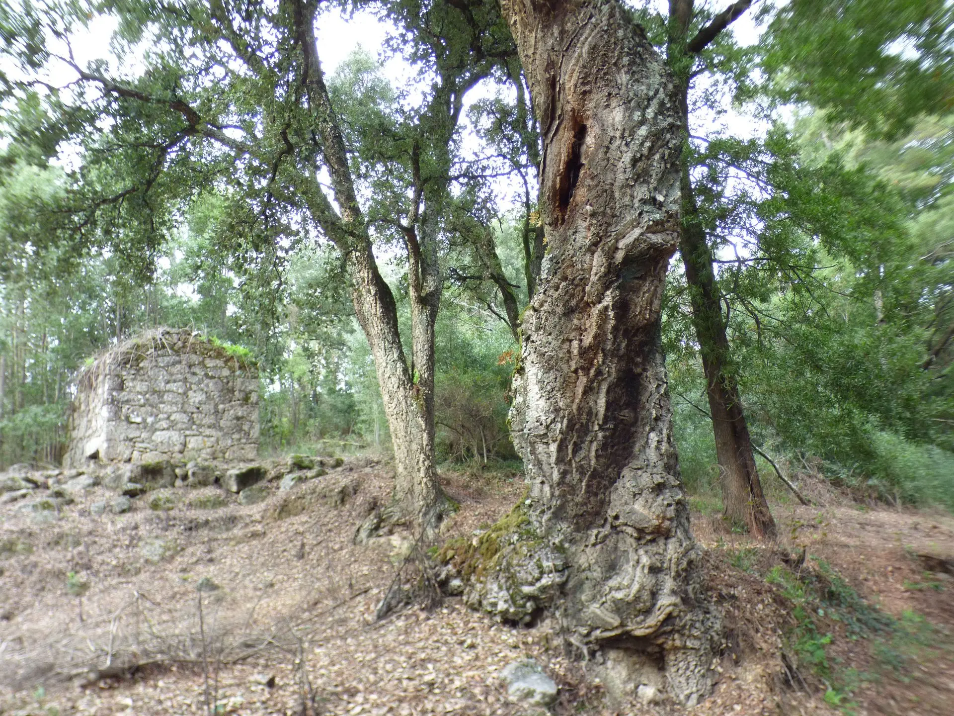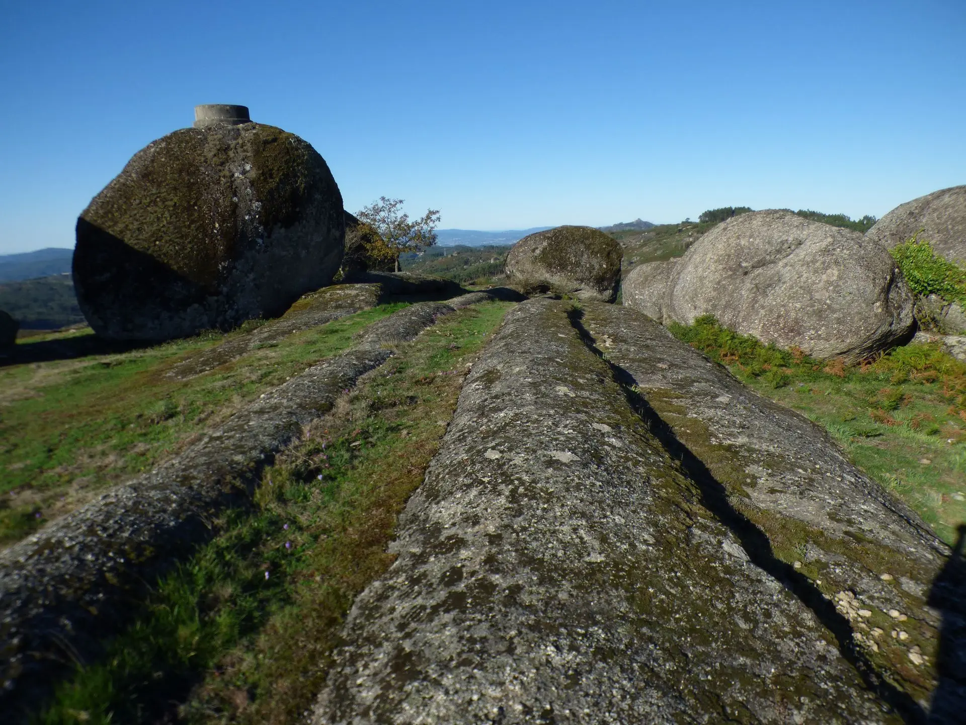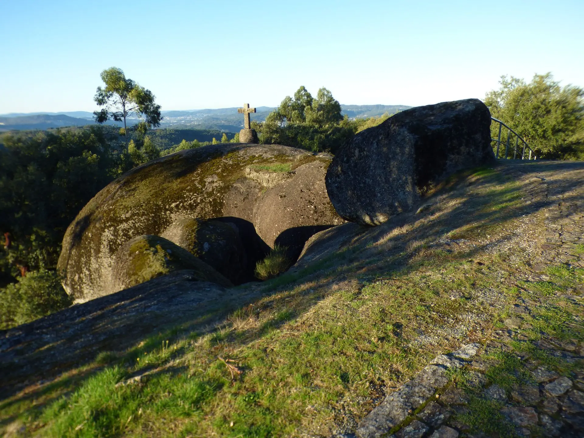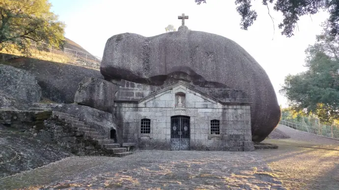 Je passe la nuit au Santuaro Senhora Da Lapa. La randonnée jusqu'au Castro de Adossa me laissera un souvenir incomparable. En me retrouvant devant le sanctuaire, j'ai la sensation de prendre un coup dans le plexus solaire. Cette énergie palpable est incroyable. Il m'arrive souvent de percevoir l'énergie d'un lieu. Jamais avec cette force, cette présence et ce recueillement. Même Tiago le tout fou marche calmement. Les pierres nous imprègnent de leurs vibrations. WAOUH. Je suis entourée de chênes lièges centenaires. Les pauvres ont vu leur écorce lacérée. Les eucalyptus m'enivrent de leurs senteurs. J'en cueille quelques feuilles pour de futures tisanes. Au loin on croirait voir le Sacré Cœur. Il s'agit de la basilique Santa Luzia près de Braga. Même les cairns ont une allure mystique. Je respire à pleins poumons. Le retour est difficile, je boite. Je n'aurai râté cette randonnée pour rien au monde.