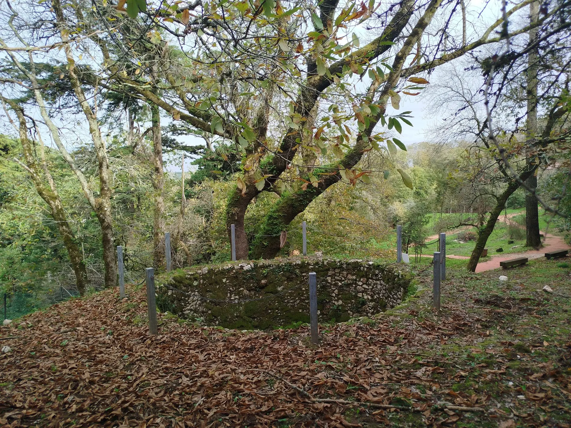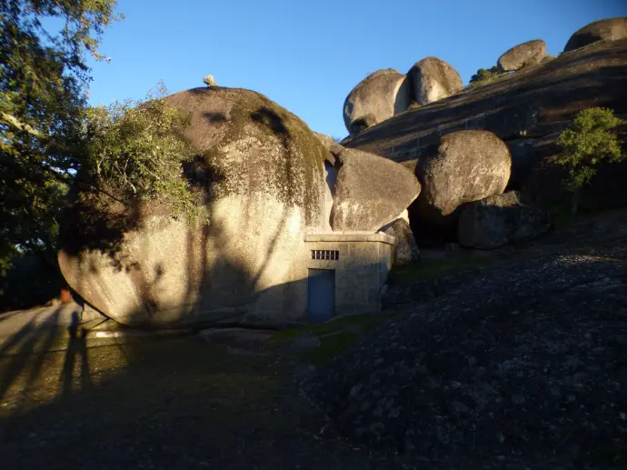 Je suis sous une pluie diluvienne en me rapprochant de la capitale. Je monte au sommet de la Serra de Montejunto. Je me suis abritée au pied du Sanctuaire de Nossa. Le vent me chahute dans le véhicule. J'attends une accalmie pour pouvoir arpenter le sentier au milieu de ces vestiges. Là haut m'attendent des ermitages et une fabrique royale de glace. Les frères dominicains en 1741 ont profité de la géologie particulière du terrain et du climat froid et humide pour construire une série de bassins en pierre qu'ils remplissaient d'eau. La nuit, l'eau gelait, les plaques étaient brisées pour être entreposées dans des silos creusées. La glace se conservait jusqu'à l'été. Cette fabrique dura jusqu'en 1885.