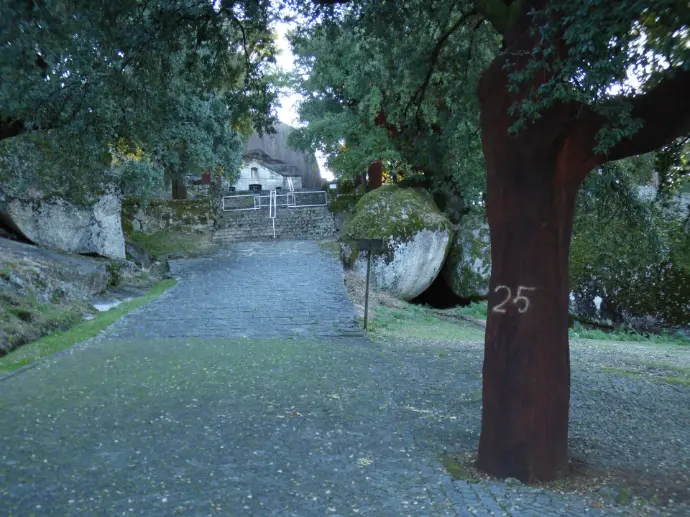 Je continue entre rochers de granits, chênes lièges, sanctuaires et cascades. Le Portugal est pour l'instant fortement urbanisé. Malheureusement je découvre un pays sale. C'est le sport national apparemment de jeter ses détritus en bord de route ou de faire de la décharge sauvage. Le diesel coûte ici 1.66 €/l. Ils sont taxés à 50/100. En France on est à 60/100. Il pleut et pas qu'un peu. Je suis dans le brouillard. Ce pays va se découvrir doucement, au gré des éclaircies.