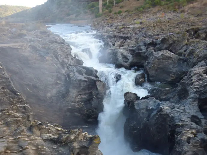 Le mauvais temps me chasse. Adieu Sintra et Lisboa, adieu les sierras. Je mets une croix sur mon baptême en chute libre à Faro et aux trésors de ce littoral. Je passe ma dernière nuit dans ce pays. Je traverse le parc naturel de la vallée de Guadania pour arriver à un cul de sac d'où je pourrai descendre vers une belle chute d'eau, le Pulo de Lobo. Partout j'ai vu des panneaux "Attention lynx". Je suis sur son territoire. Malheureusement il le partage avec des milliers de moutons que j'ai rencontrés en 40 km de routes. A quoi bon faire des parcs, les interdire la nuit, tout cela pour favoriser de l'élevage. Le débat est ouvert. A part la bêtise et l'ignorance, ces lieux n'ont aucun intérêt pour la faune et la flore sauvage. J'ai passé 15 jours dans ce pays. J'ai vu un lapin, un renard et une loutre. Par contre les élevages sont innombrables. L'agriculture intensive omniprésente. L'urbanisation galopante. La densité d'habitants au km² est un quart plus importante qu'en Espagne. Je vous ai déjà parlé des déchetteries sauvages. Je ne reviendrai pas dessus. Ce pays reste un parcours inachevé dans mon voyage. Je n'y retournerai pas ou alors avant bien longtemps. J'ai bien d'autres contrées à découvrir.