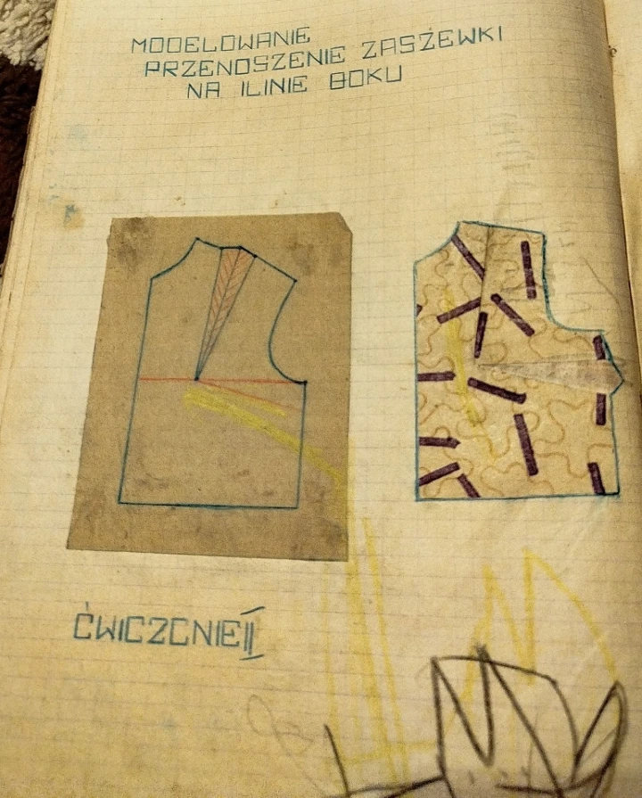Ma grand-mère, Anna, a 73 ans et est la cousine de votre mère. Elle s'est occupée d'enfants toute sa vie, mais a été politicienne pendant un temps. Elle a été membre du Parti populaire polonais (PSL) et maire de la commune. Mon grand-père, Tadeusz, est décédé le 25 mai 2025, à l'âge de 84 ans. Il était soldat, tailleur et agriculteur. Pour son métier de tailleur, il créait ses propres patrons. Il reste un de ses cahiers. Fait important pour ce couple. Ils n'ont jamais vécu ensemble. La maison de Tadeusz à Podchybie était vétuste et trop petite avec 4 enfants. De plus ils n'ont eu l'eau courante dans la maison qu'en 1985. (A 1500 km de distance, une maison en ville et une maison en pleine campagne, deux pays complétement différents, mais pas l'eau dans la maison). Ils avaient un puits dans le jardin pour les besoins ménagers. Mais pour la ferme, ils attelaient les chevaux à une citerne et faisaient le plein d'eau à 2 km. Les enfants ont donc été élevés dans la maison d'Anna à Ulina qui a été construite dans les années 1960.